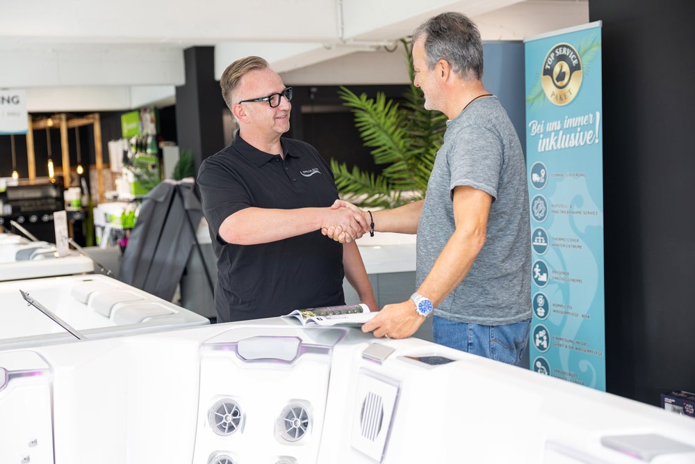Aus dem Wunsch heraus, den gesamten Prozess vom Kauf bis zur Inbetriebnahme eines Whirlpools für unsere Kunden einfacher und angenehmer zu gestalten, ist einer der größten regionalen Showrooms für Whirlpools, Swim Spas, Saunen, Infrarotkabinen und Outdoor-Wellness-Produkte entstanden – auf über 600 m² Ausstellungsfläche in Swisttal-Heimerzheim.